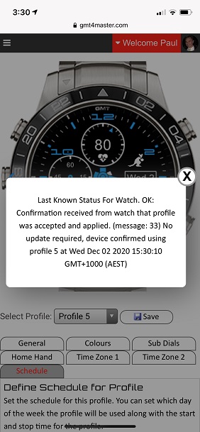 Once you have activated your key the watch will check that it is using the correct profile every 5 minutes. If your watch is not connected to your phone or your mobile device does not have internet access the update will fail and the watch will continue to use the current profile. The watch will continue to check every 5 minutes.