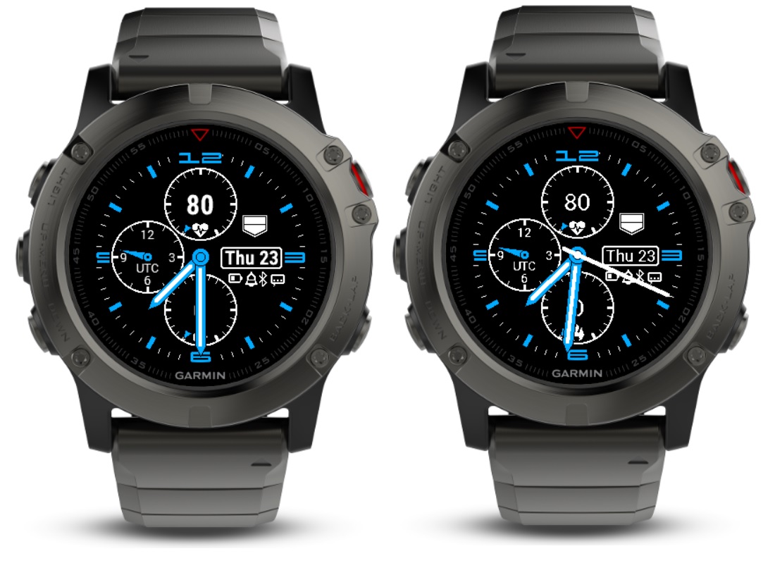 If the second hand is turned off then the standard Garmin fonts can be used. If the second hand is on then there are some restrictions Garmin enforce due to memory available on the device and I have to use my own fonts which are not as sharp when drawn. You can see from the image below with the second hand off the fonts are clear and bold. With the second hand on the fonts are not rendered as clearly. They may also be slightly different size on some Garmin devices since the inbuilt fonts vary from model to model.