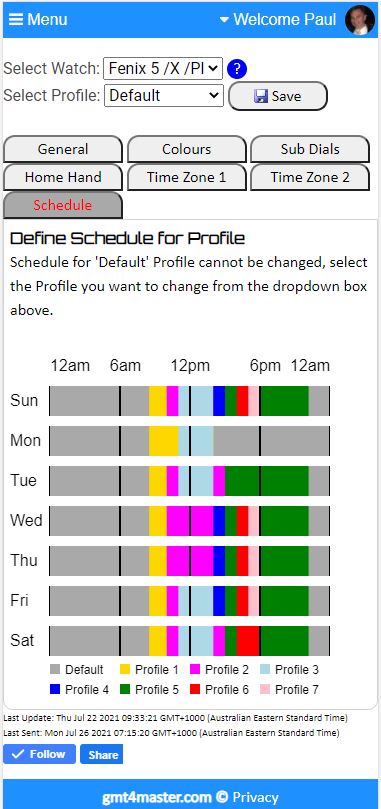 A new version of GMT4 and GMT 4 Master are now available that allow user watch face settings to be configured via a web page. This allows the user to define up to 8 different watch face configurations and easily switch between profiles. You can even set up a schedule to have the watch face switch automatically! So now you can have your 9-5 work watch, switch to different configuration for the evenings and do something completely different on the weekends.