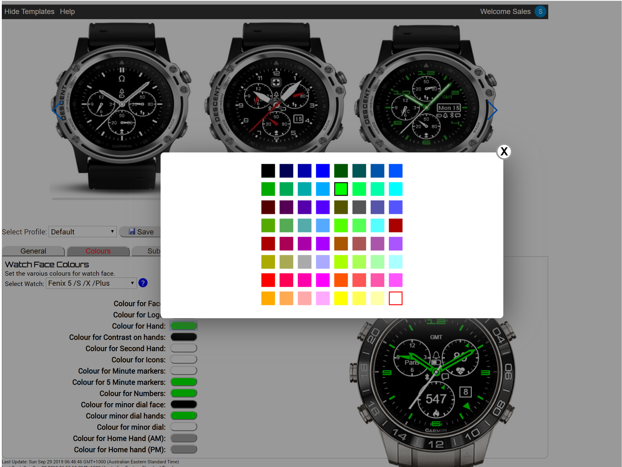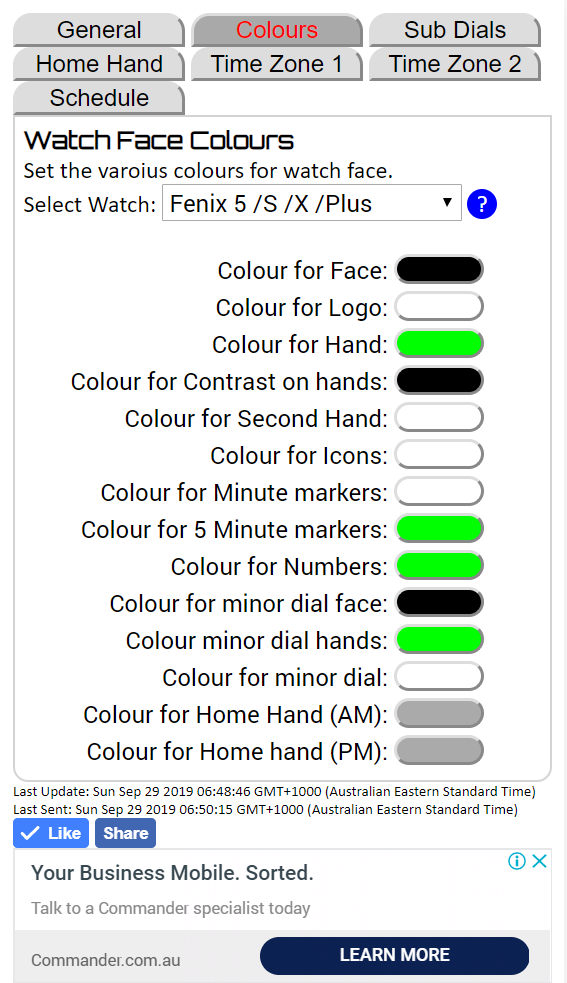 Your favouritte GMT 4 watch face now supports the full 64 colours that your device supports. The new feature is available via the website only so that the user can select from a colour palette.